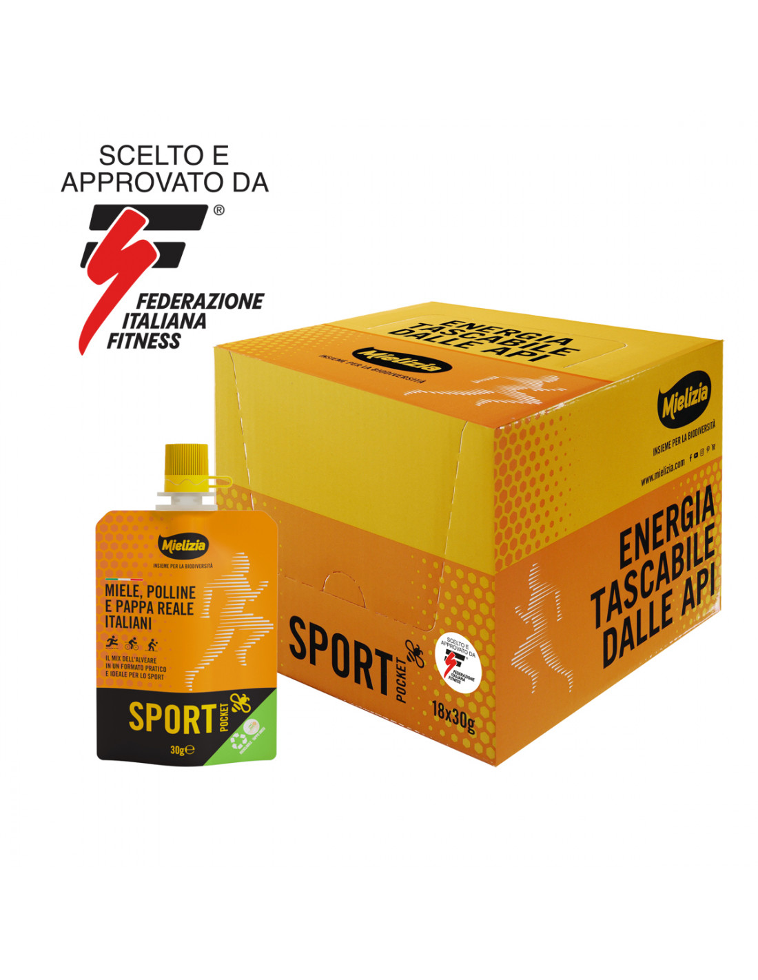 SportPocket Mielizia is a unique mix that contains many treasures from the 100% Italian hive and from the supply chain, in an ideal format for those who practice sports and to take with them even outside the home!